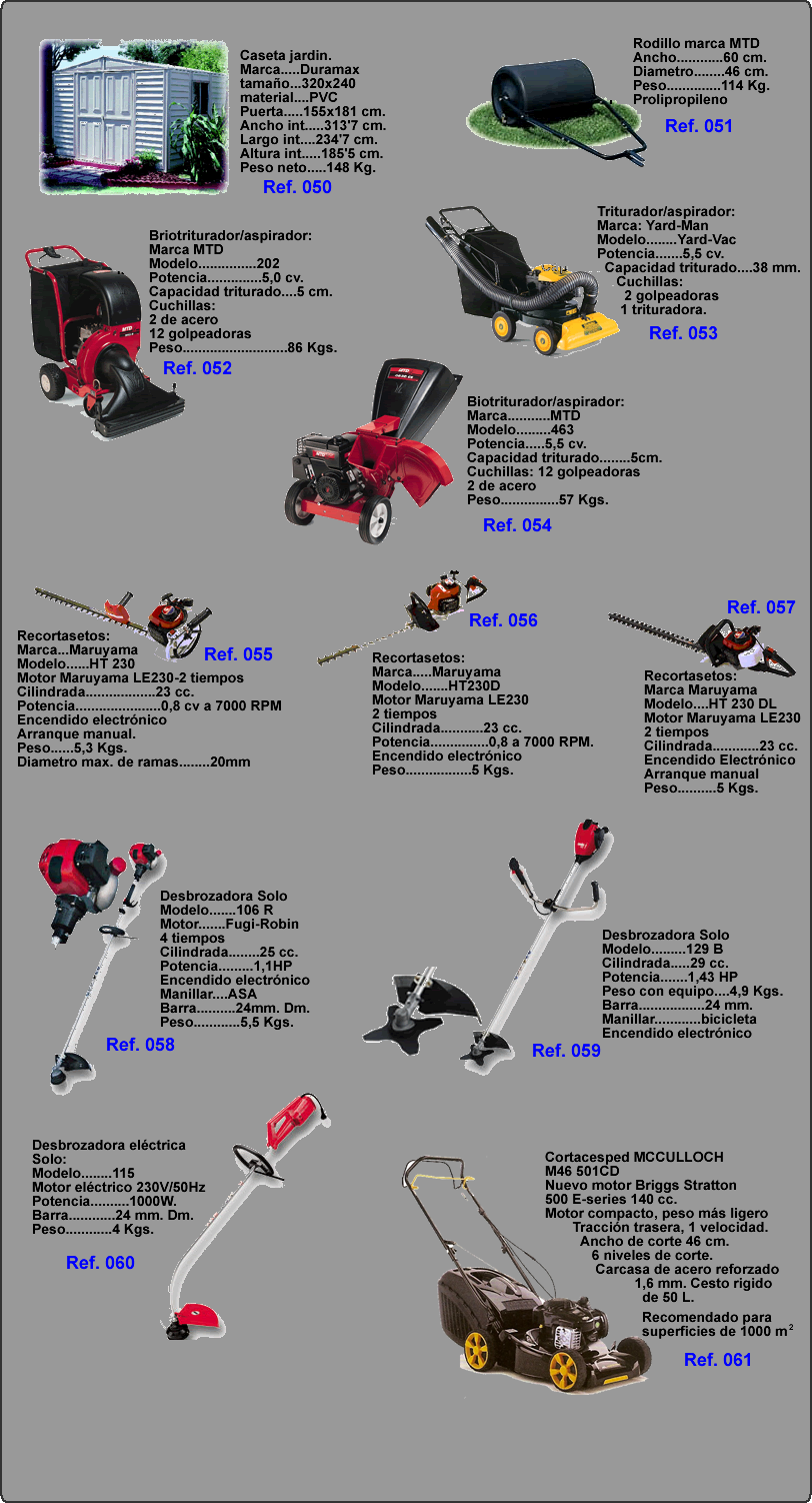 perfectas condiciones desde cualquier herramienta manual hasta el cortacesped que necesite según